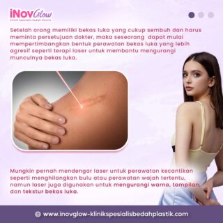 Setelah orang memiliki bekas luka yang cukup sembuh dan harus meminta persetujuan dokter, maka seseorang dapat mulai mempertimbangkan bentuk perawatan bekas luka yang lebih agresif seperti terapi laser untuk membantu mengurangi munculnya bekas luka. Mungkin pernah mendengar laser untuk perawatan kecantikan seperti menghilangkan bulu atau perawatan wajah tertentu, namun laser juga digunakan untuk mengurangi warna, tampilan, dan tekstur bekas luka.