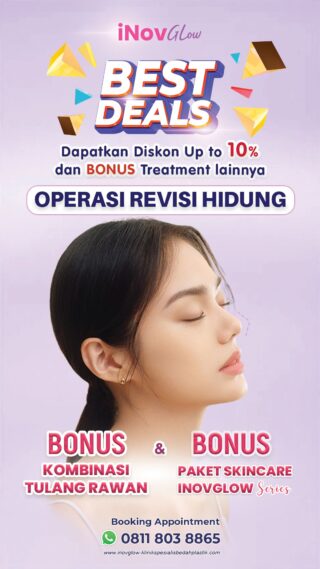 Untuk itu, Klinik Inov Glow ingin memberikan solusi yang lebih terjangkau dan ramah di kantong. Setelah melakukan evaluasi dan peninjauan, kami memutuskan untuk merevisi biaya operasi hidung yang sebelumnya cukup tinggi. Kami sadar bahwa setiap orang memiliki kondisi keuangan yang berbeda-beda, namun hal tersebut tidak harus menghalangi impian Anda untuk memiliki hidung yang lebih cantik dan sesuai dengan keinginan.