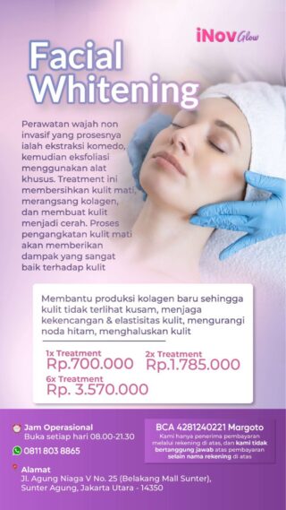 Inovers, Ketika Kamu mencari tempat yang tepat untuk melakukan Facial whitening Terbaik jangan khawatir dan bingung langsung datang dan konsultasi di InovGlow Plastic Surgery. Demi memastikan keamanan pasien, semua kegiatan perawatan dan operasi Inov Glow Klinik sudah didukung oleh peralatan modern dan tim dokter spesialis yang ahli di bidangnya. Untuk informasi lebih lanjut seputar konsultasi dan harga, silakan kunjungi dan hubungi nomor telepon & Whatsapp InovGlow Plastic Surgery.