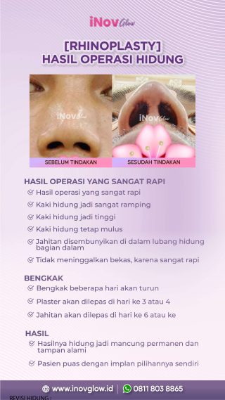 Kami sangat mengerti bahwa keputusan untuk melakukan operasi plastik tidaklah mudah. Namun, di Inov Glow, kami siap membantu Anda mewujudkan impian untuk memiliki hidung yang indah dan proporsional. Dengan pengalaman dan pemahaman yang luas tentang kebutuhan dan keinginan pasien, kami akan memberikan hasil operasi yang sesuai dengan ekspektasi Anda.