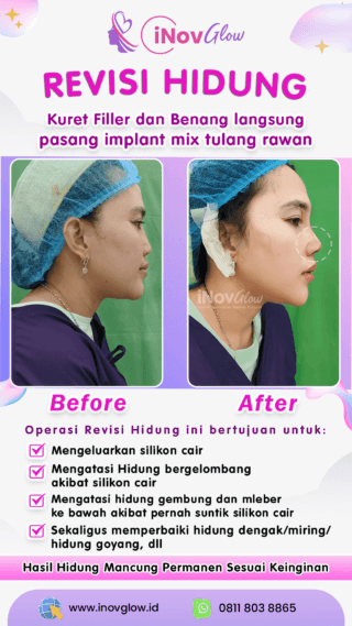Namun, perlu anda ketahui bahwa di Klinik Inov Glow, operasi revisi hidung merupakan salah satu layanan yang telah terbukti sukses dan menjadi andalan. Dengan tenaga medis yang profesional dan berpengalaman, serta teknologi terkini yang digunakan, Klinik Inov Glow menawarkan solusi yang aman dan efektif untuk memperbaiki hasil operasi hidung yang tidak memuaskan.