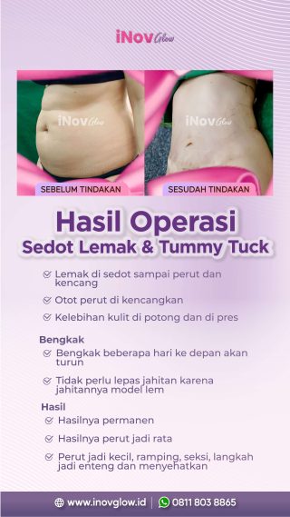 Rasa nyeri yang diakibatkan oleh prosedur sedot lemak tidaklah seseram yang Inovers bayangkan. Obat Pereda rasa nyeri setelah operasi langsung akan diberikan untuk mencegah nyeri saat anestesi hilang perlahan. Tapi Inovers tidak perlu khawatir karena selama 5 hari ke depan setelah Inovers melakukan Liposuction, Inovers akan datang ke Klinik Kecantikan Inov Glow Plastic Surgery untuk melakukan perawatan pasca operasi. Inovers akan ditangani dengan sangat baik dan profesional. Jadi Inovers tidak perlu takut dan khawatir lagi tentunya. Inovers dapat menghubungi nomor hotline dibawah ini dan dapatkan harga promo menarik. Pastikan Inovers datang ke Klinik Kecantikan Inov Glow Plastic Surgery untuk mendapatkan solusi permasalahan Inovers ya.