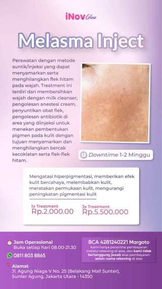 Tidak disarankan memakai produk kimiawi saat sedang hamil ya Inovers. Semua yang Inovers mau lakukan untuk menghilangkan melasma saat hamil harus dikonsultasikan dengan dokter ahli sebelum memutuskan memakai, mengkonsumsi bahkan melakukan treatment tertentu untuk menghilangkan melasma selama kehamilan. Inovers dapat melakukan konsultasi dengan ahli kecantikan di Klinik Kecantikan Inov Glow Plastic Surgery saat Inovers sudah tidak hamil lagi atau sudah melahirkan. Dokter ahli akan membantu Inovers untuk menentukan treatment mana yang cocok dan aman untuk Inovers. Jika sudah melahirkan Inovers tetap harus dapat info yang terpercaya dari ahlinya jika ingin melakukan procedure apapun. Klinik Kecantikan Inov Glow Plastic Surgery akan membantu Inovers untuk mendapat solusi terbaik.