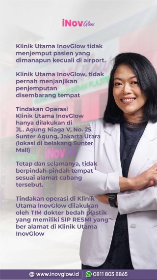 Dibalik popularitas Inov Glow Plastic Surgery sebagai klinik pilihan terbaik melakukan berbagai macam perawatan dan Operasi Kecantikan Jakarta, tersembunyi sebuah tim dokter bedah plastik yang handal dengan pengalaman bertahun-tahun. Ditopang oleh teknologi medis terbaru dan dedikasi yang tinggi, mereka berupaya keras memastikan setiap pasien mendapatkan hasil terbaik. Lebih dari itu, mereka memahami bahwa setiap individu memiliki kebutuhan dan harapan yang berbeda. Oleh karena itu, pendekatan yang diberikan pun disesuaikan dengan ciri khas dan keunikan setiap pasien.
